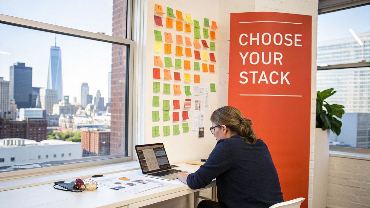 It dictates who you can hire, how fast you can ship, and how quickly you burn through your runway. Get it right, and you've built a solid foundation. Get it wrong, and you're looking at costly rewrites and wasted months you just don't have. The goal isn't to chase the newest, shiniest framework; it's to prioritize what actually drives your business forward.
