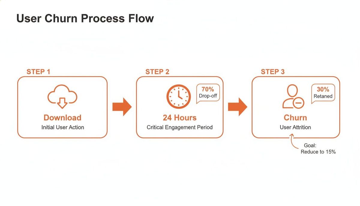 This visual just hammers home how short that journey from download to churn can be. It's why getting your early-stage analysis right is a matter of survival.
