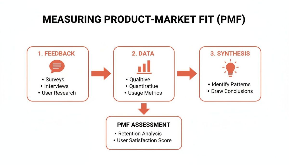 | **Qualitative** | "Why do users love or leave us?"<br>"What problem are we *really* solving for them?"<br>"How disappointed would they be if we disappeared?" | • Sean Ellis PMF Survey<br>• Net Promoter Score (NPS)<br>• User Interviews & Feedback Sessions<br>• App Store Reviews |