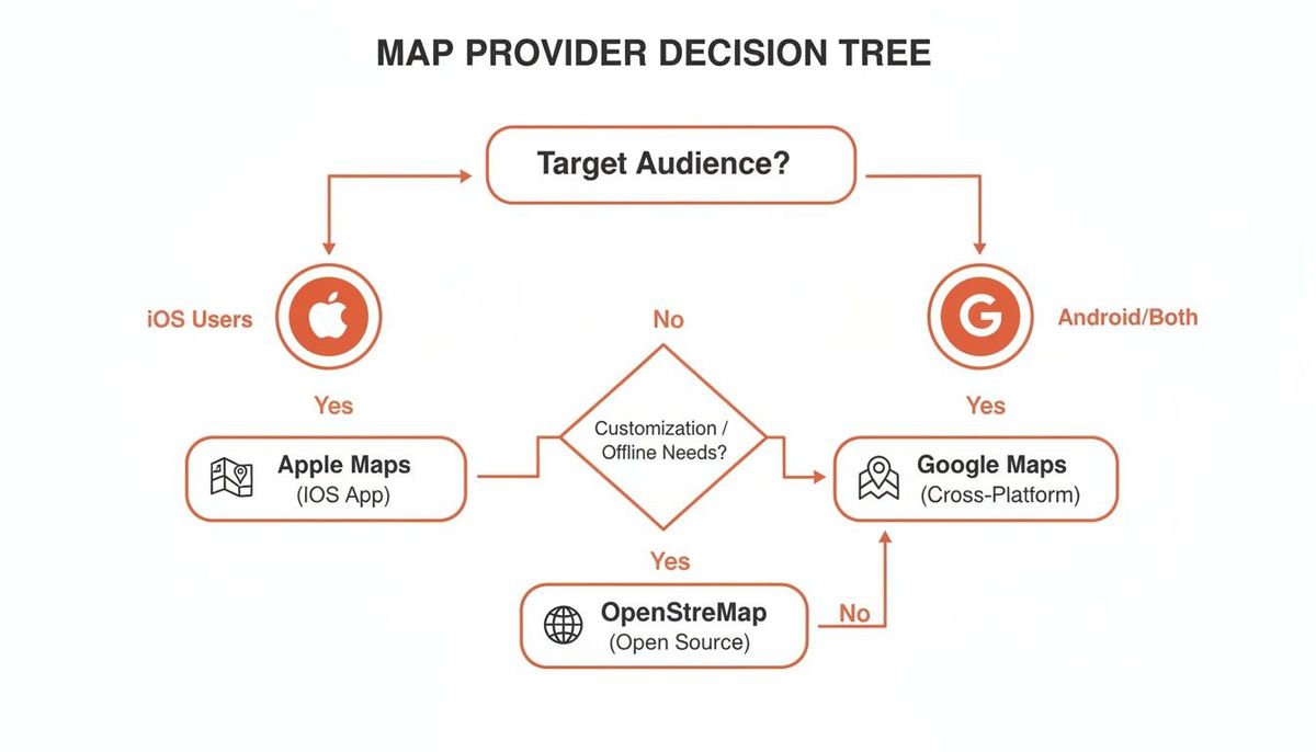 Ultimately, the choice hinges on who you're building for. An Android-heavy or global user base points toward Google Maps, while an exclusive focus on the Apple ecosystem makes Apple Maps an easy and cost-effective pick.