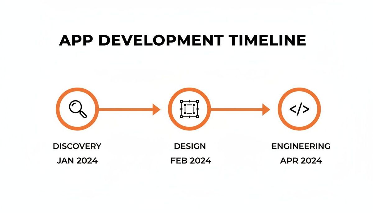Turning an abstract idea into a tangible app requires a concrete game plan. You need to break the massive task of "building an app" into smaller, manageable stages. Each phase has its own purpose, a clear set of tasks, and a specific deliverable that sets up the next step for success.