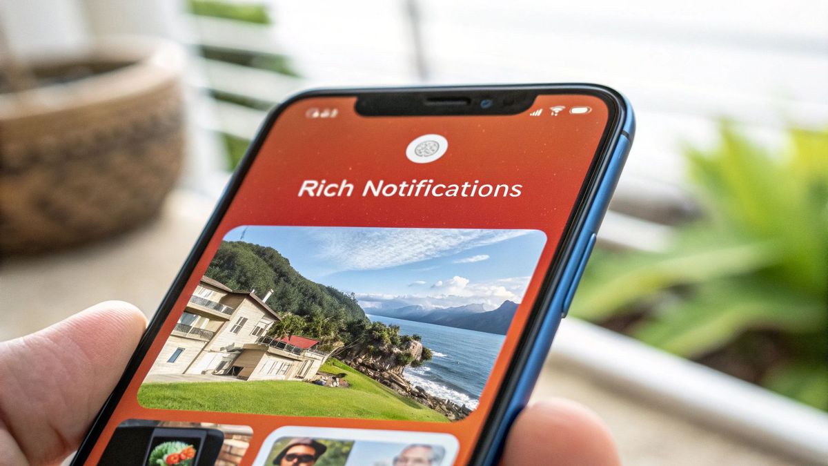 Plain text notifications often get lost in the noise of a crowded lock screen. One of the most impactful push notification best practices is to use rich media and interactive elements to capture user attention instantly. This involves embedding images, videos, GIFs, and interactive buttons directly into the notification, providing context and enabling action without even opening the app.
