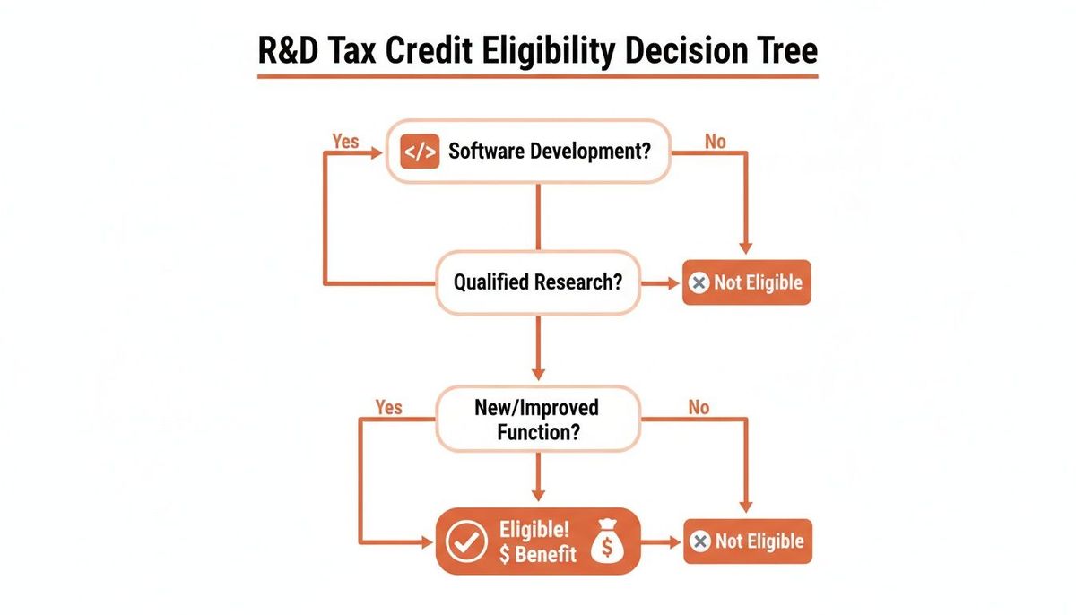 This decision tree gives you a quick visual of the path from standard software work to activity that qualifies for a serious financial benefit.
