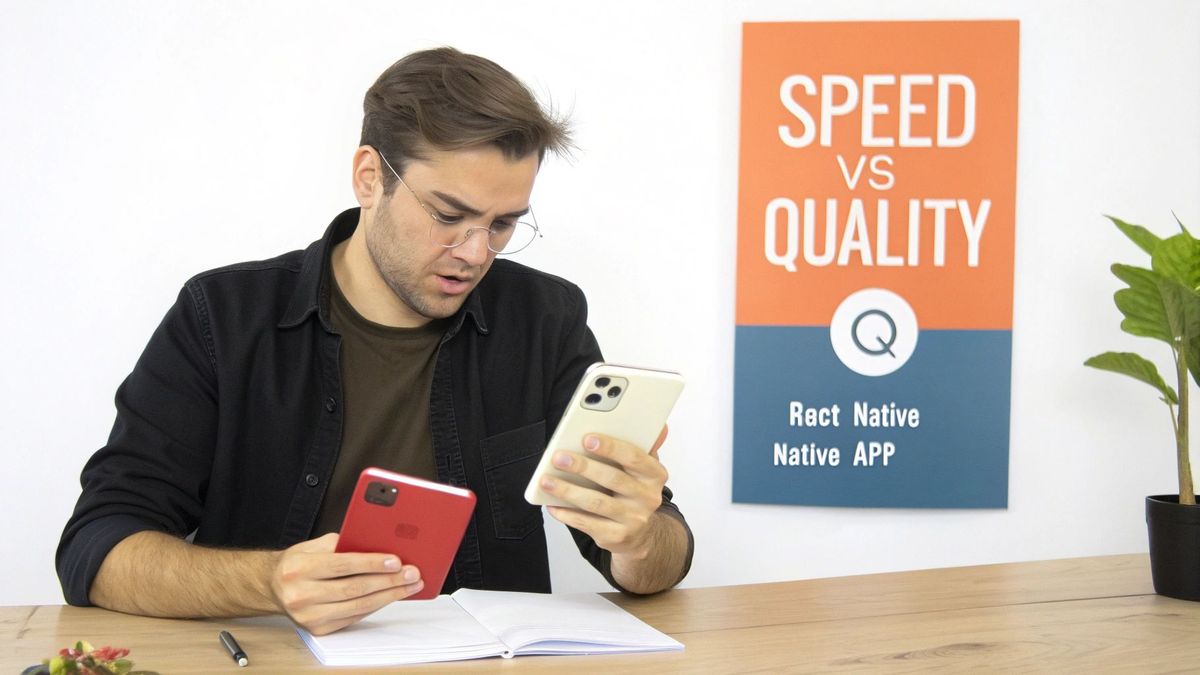 The real tension in the React Native vs. native debate comes down to this: React Native gets you to market with incredible speed and efficiency, while native development delivers raw, unmatched performance for apps that push the hardware to its limits.