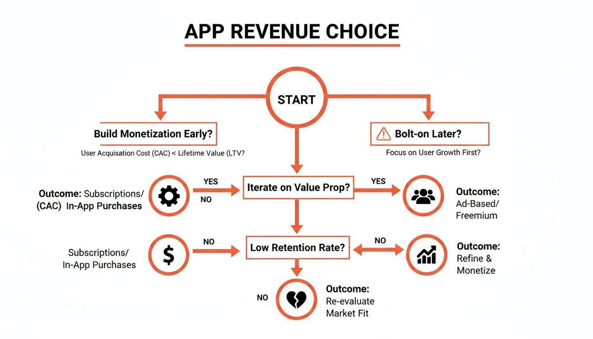 People often wonder if they should build monetization in from day one or just focus on growth and add it later. This flowchart gives you a simple way to think through that decision.